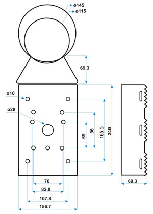 Adaptador para montaje en poste o columna. Incluye placa dentada de acero, 2 kits de tornillos para instalación de carcasas de tipo domo o de tipo caja, tapones de silicona, protector para cableado y cintas/abrazaderas en acero inoxidable para una perfecta sujeción al poste.