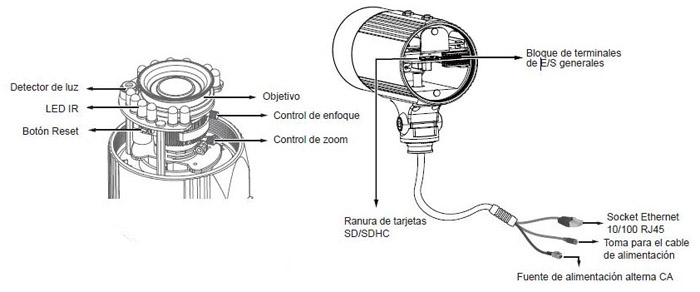 Compresión; H.264, MPEG-4 y MJPEG Trasmisión: Múltiples transmisiones simultáneas Trasmisión H.264 sobre UDP, TCP, HTTP o HTTPS Multidifusión de trasmisión en H.264/MPEG-4 Transmisión MPEG-4 sobre UDP, TCP, HTTP o HTTPS Transmisión MJPEG sobre HTTP o HTTPS Soporta transmisión adaptativa de actividades para el control dinámico del límite de cuadros Soporta ePTZ para eficiencia de datos Vigilancia móvil 3GPP soportada Rango de cuadros: H.264: hasta 30IPS a 1280x800, hasta 30IPS a 1280x720 MPEG-4: hasta 25IPS a 1920x1080 MJPEG: hasta 30IPS a 1920x1080 Asistente de enfoque |