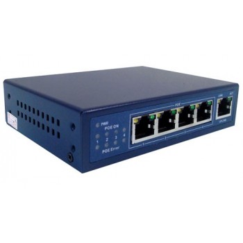 Switch PoE 4 puertos 10/100, IEEE 802.3af, 15.4W hasta 100 mts. por puerto, Fuente Interna |