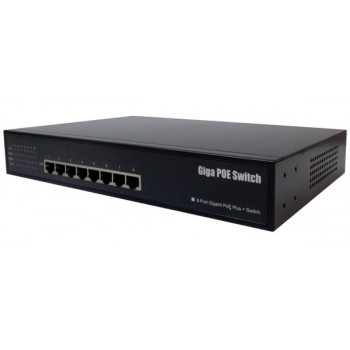 Switch PoE 8 puertos Gigabit 10/100/1000, 15.4/25.5W hasta 100 mts. por puerto, Fuente Interna |